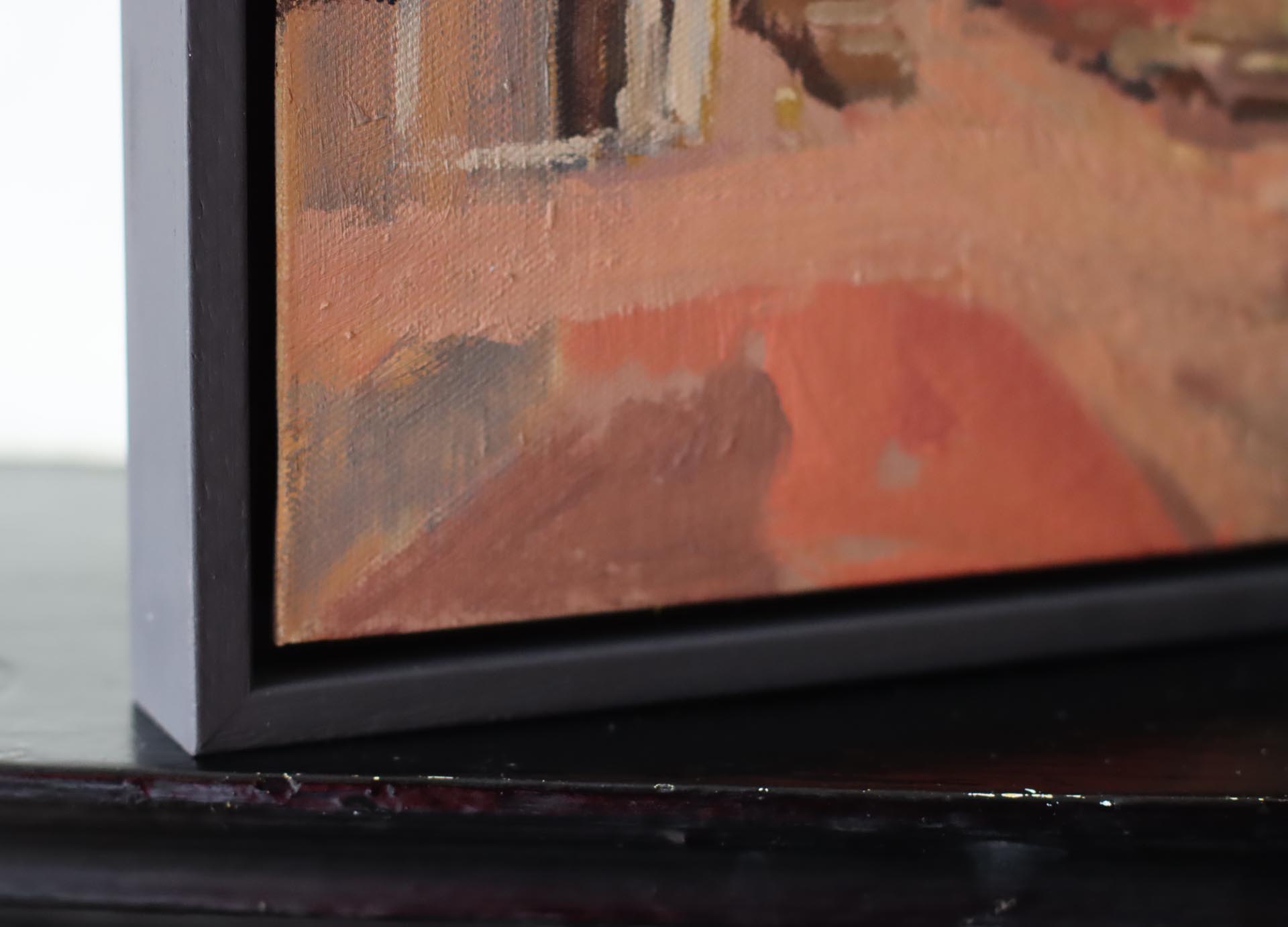 Hand painted dark grey wood float frame. Ready to hang. This type of frame has a small shadow gap and creates the illusion that the painting is floating within the frame.
